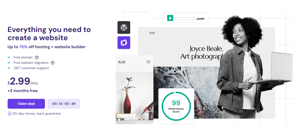 Hostinger offers a range of services, including Shared hosting, WordPress hosting, Cloud hosting, Hosting for agencies, VPS hosting, Cyberpanel hosting, Minecraft server as well as domain registration and website builder tool.