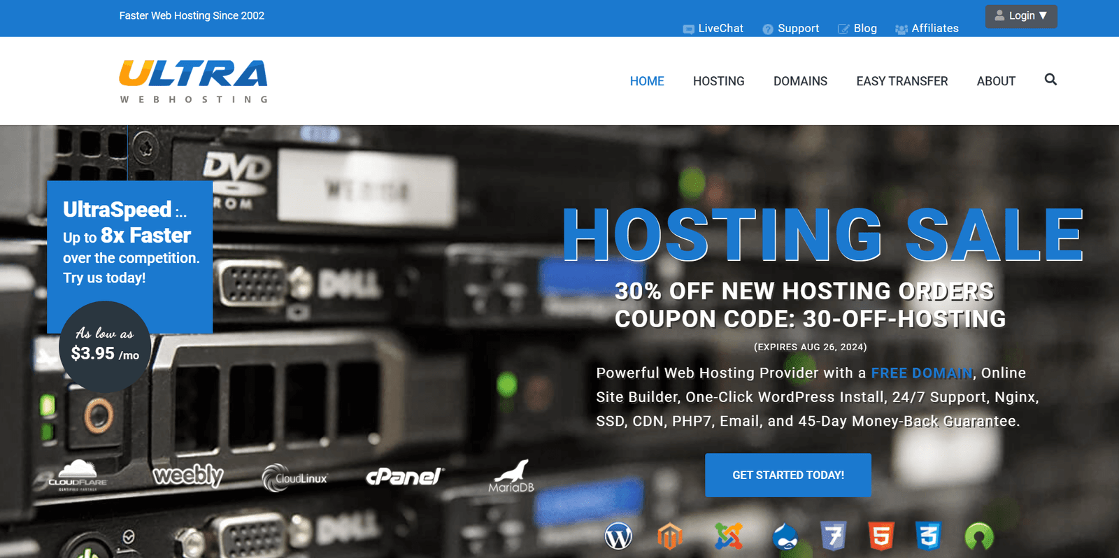 Ultra Web Hosting started its journey as Flux Services nearly 20 years ago. Today, this Seattle-based company offers shared web hosting (including WordPress hosting, HIPAA-compliant hosting, Node.js hosting, and NGINX hosting) along with reseller hosting, managed VPS (virtual private servers), and dedicated servers. It also offers domain registration and transfer services and marketing tools.